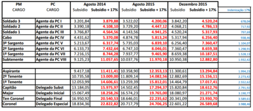Dessa forma, a segurança pública de Santa Catarina terá a melhor tabela de remuneração do Brasil(anexo). Esse é um ganho muito grande que o Governo Colombo tem dado em reconhecimento ao bom trabalho desempenho e dedicação dos servidores da segurança pública.