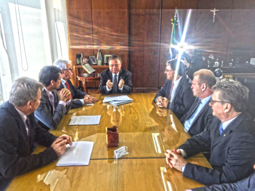 O governador Raimundo Colombo (PSD), o deputado estadual Gelson Merisio (PSD), ex-presidente da Alesc, e o secretário estadual da Agricultura, Moacir Sopelsa (PMDB), se reuniram com o ministro da Agricultura, Blairo Maggi (PMDB) para defender a produção agropecuária e o controle de qualidade de Santa Catarina nas criações de suínos e frangos do estado. Na reunião desta quarta-feira, a missão mais urgente é evitar que os produtos catarinenses fiquem bloqueados para exportações: hoje, a produção catarinense chega a 120 países e não há nenhum fiscal catarinense envolvido na denúncia do Polícia Federal dentro da Operação Carne Fraca.