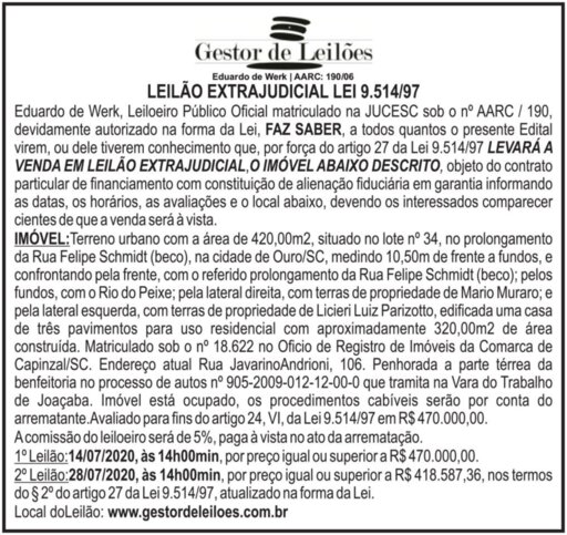 ESTADO DE SANTA CATARINA - COMARCA DE CAPINZAL