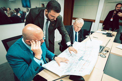 Alexandre Back AGÊNCIA AL - Deputados Berlanda e Lucas Neves, e o secretário de Estado da Saúde, Diogo Demarchi, visualizam o projeto do Hospital São José, de Bocaina do Sul