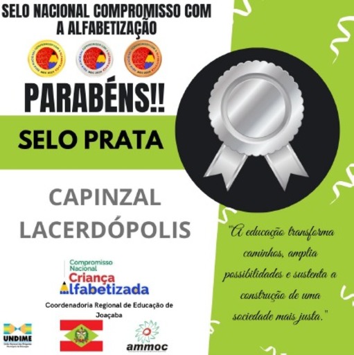 O município de Lacerdópolis conquistou o Selo Nacional Compromisso Criança Alfabetizada – Categoria Prata, um reconhecimento do Ministério da Educação às redes que demonstram avanços consistentes e compromisso com a alfabetização na idade certa.