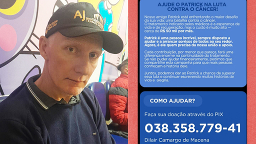 A contribuição voluntária pode ser realizada pelo pix 038.358.779-41, em nome de Dilair Camargo de Macena, esposa do paciente.