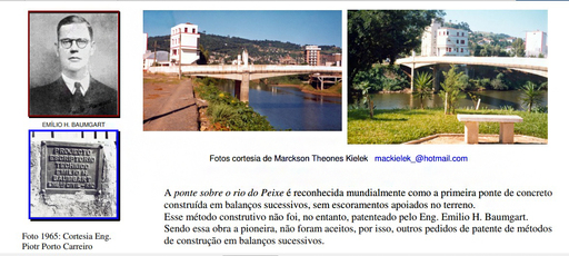 Durante 53 anos, a Ponte Emílio Baumgart representou um marco na engenharia mundial por ser a primeira de concreto armado construída em balanços sucessivos, sem escoramentos apoiados no terreno. Ostentou a fama de ser a primeira, mostrando originalidade, ousadia, imponência dentro do processo construtivo. Ela viu a vila se transformar em cidade e se emancipar, participou do crescimento juntamente com a estação, viu um povo de labor intenso lutando pelo progresso imenso, viu suas margens serem alteradas com construções e a mata ser derrubada.