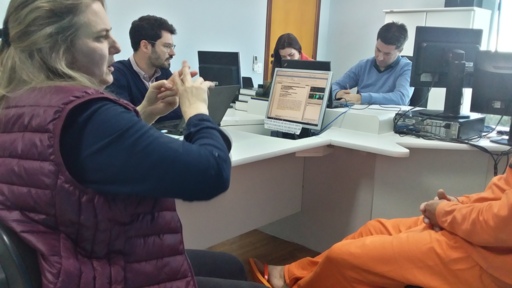 O suspeito tem 50 anos e é deficiente auditivo. Uma intérprete de Linguagem Brasileira de Sinais (Libras) auxiliou na audiência. Ele informou que é natural de Concórdia e reside em Chapecó há 14 anos. É casado e tem dois filhos. Trabalha na construção civil há nove anos, com carteira assinada.